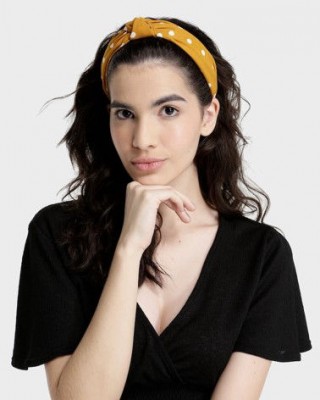 TIARA NÓ ABERTO MOSTARDA COM POAS BRANCOS - NOVA