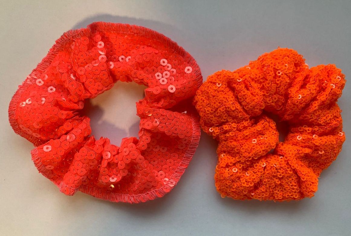 02 ELASTICOS DE CABELO DE PAETE NEON - ROSA E LARANJA - NOVO SEM ETIQUETA