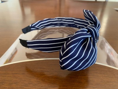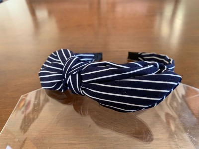 TIARA COM LAÇO, PRETA COM LISTRAS BRANCAS - NOVA