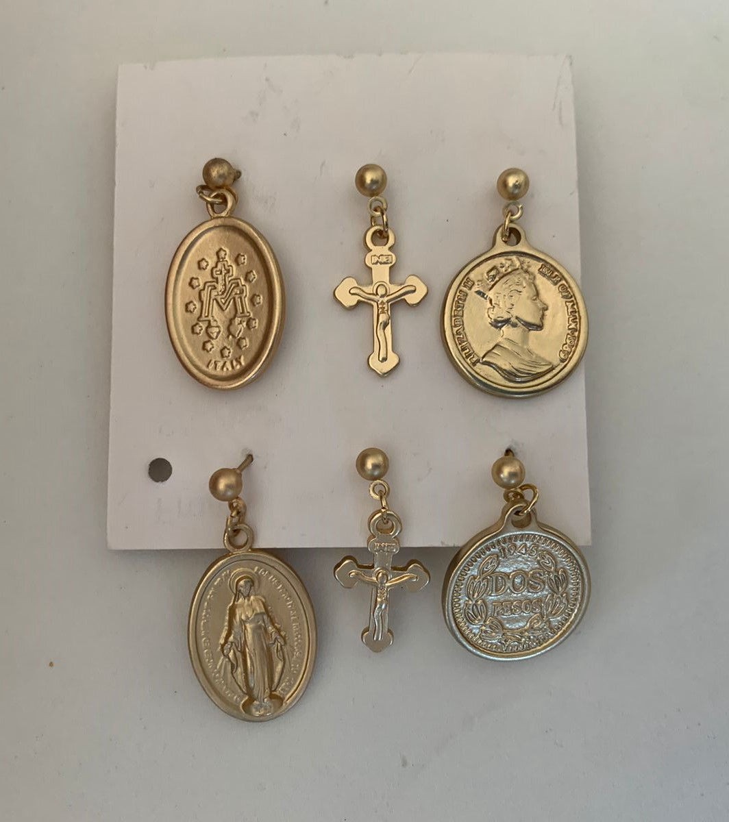 KIT COM 3 PARES DE BRINCOS DOURADO COM TEMA RELIGIOSO - NOVO SEM ETIQUETA - COD1450