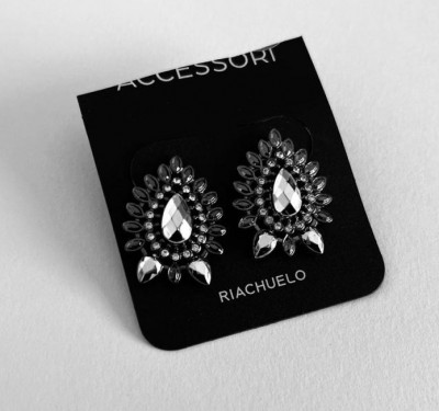 PAR DE BRINCOS PRATEADO E CHUMBO COM STRASS - NOVO - COD3131