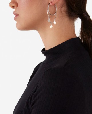 PAR DE BRINCOS - PRATEADO - ARGOLA COM ESTRELAS - NOVO SEM ETIQUETA - COD1102