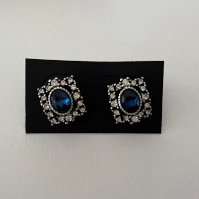 PAR DE BRINCOS PRATEADOS COM STRASS E PEDRA DE RESINA AZUL - NOVO - COD3112
