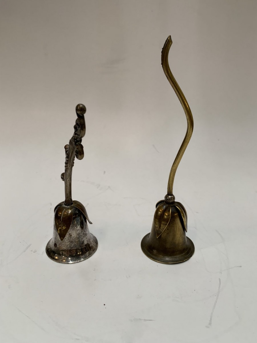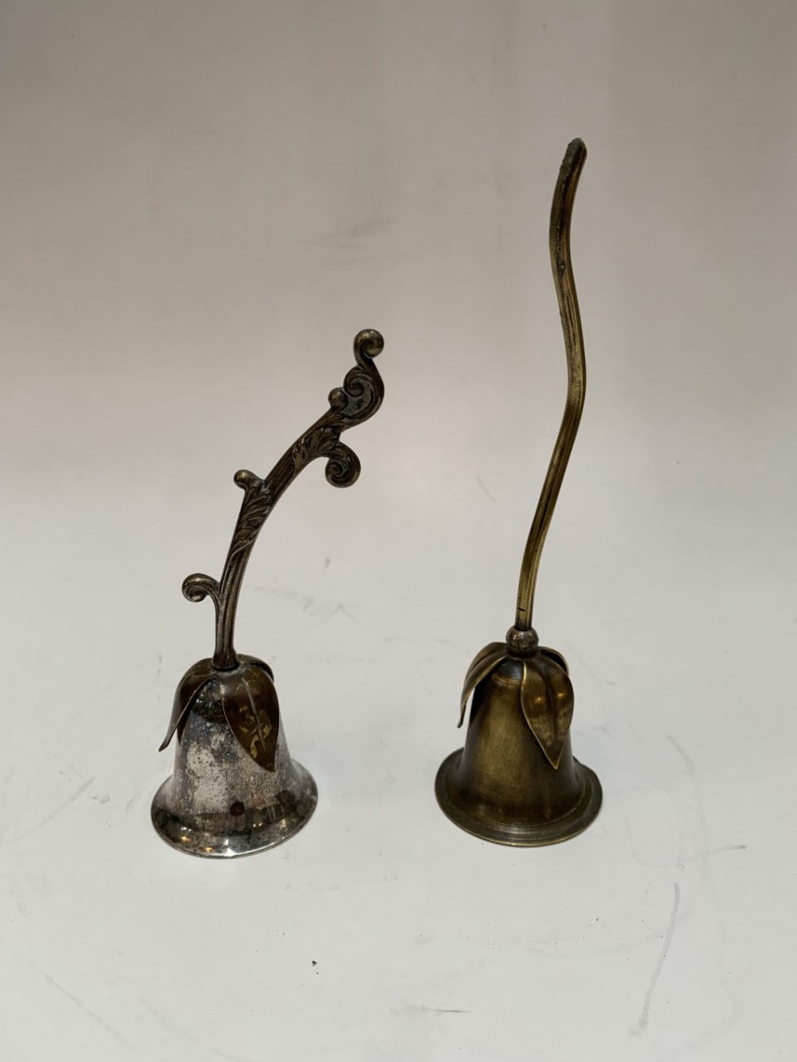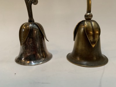 PAR DE ANTIGOS SINOS DE PRATA - 12CM E 15,5CM DE ALTURA - METAL EM PERFEITO ESTADO