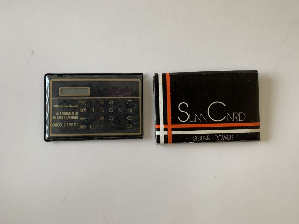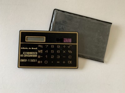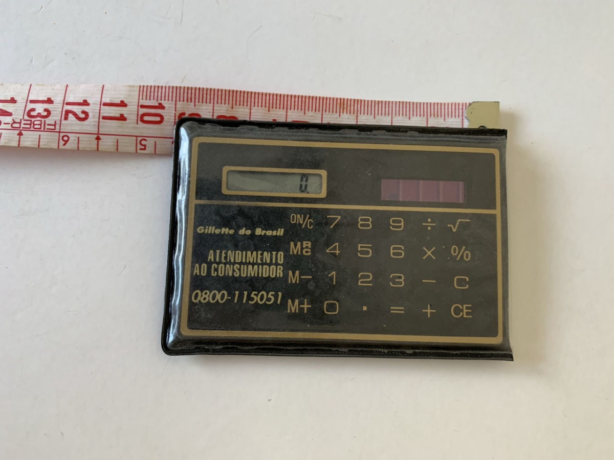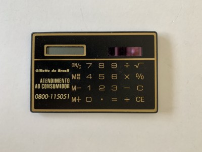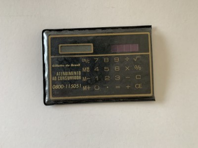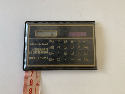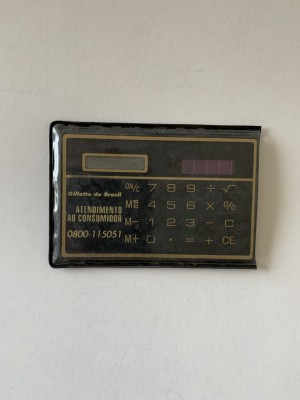 CALCULADORA SOLAR PROMOCIONAL GILLETTE DO BRASIL - 9CM X 6CM - USADA EM ÓTIMO ESTADO
