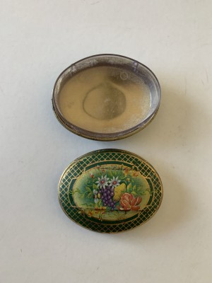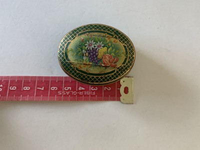 ANTIGA E DELICADA CAIXINHA DE METAL INGLESA COM ESTAMPA FLORAL - 5CM DE LAGURA