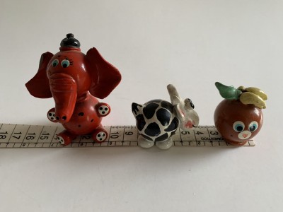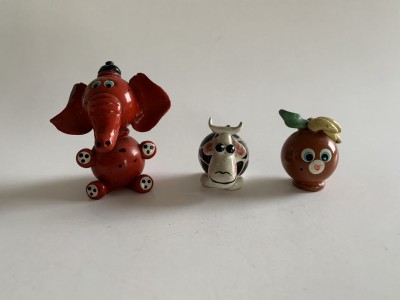CONJUNTO DE 03 BONECOS DE BOLAS DE GUDE PINTADAS - ANOS 80 - NO ESTADO