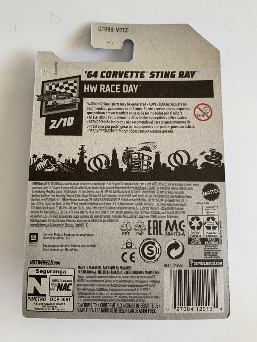 HOT WHEELS - '64 CORVETTE STING RAY - HW RACE DAY 2/10 - GTB88 - NO BLISTER