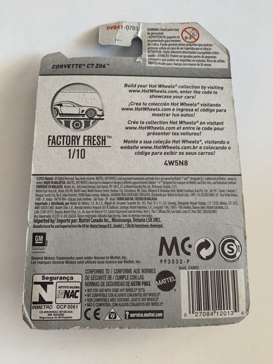 HOT WHEELS - CORVETTE C7 Z06 - FACTORY FRESH 1/10 - DVB41 - NO BLISTER