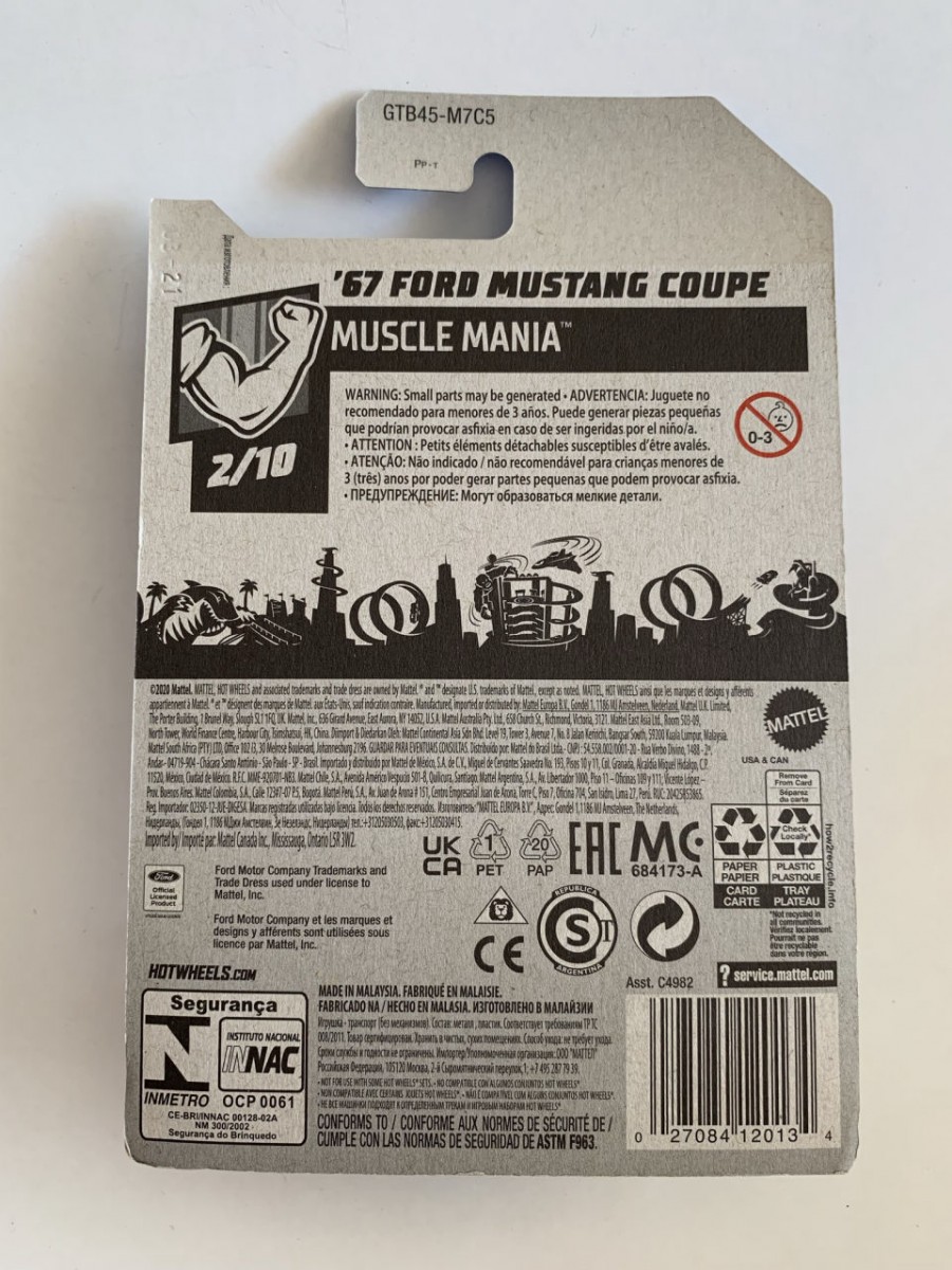 HOT WHEELS - '67 FORD MUSTANG COUPE - MUSCLE MANIA 2/10 - GTB45- NO BLISTER