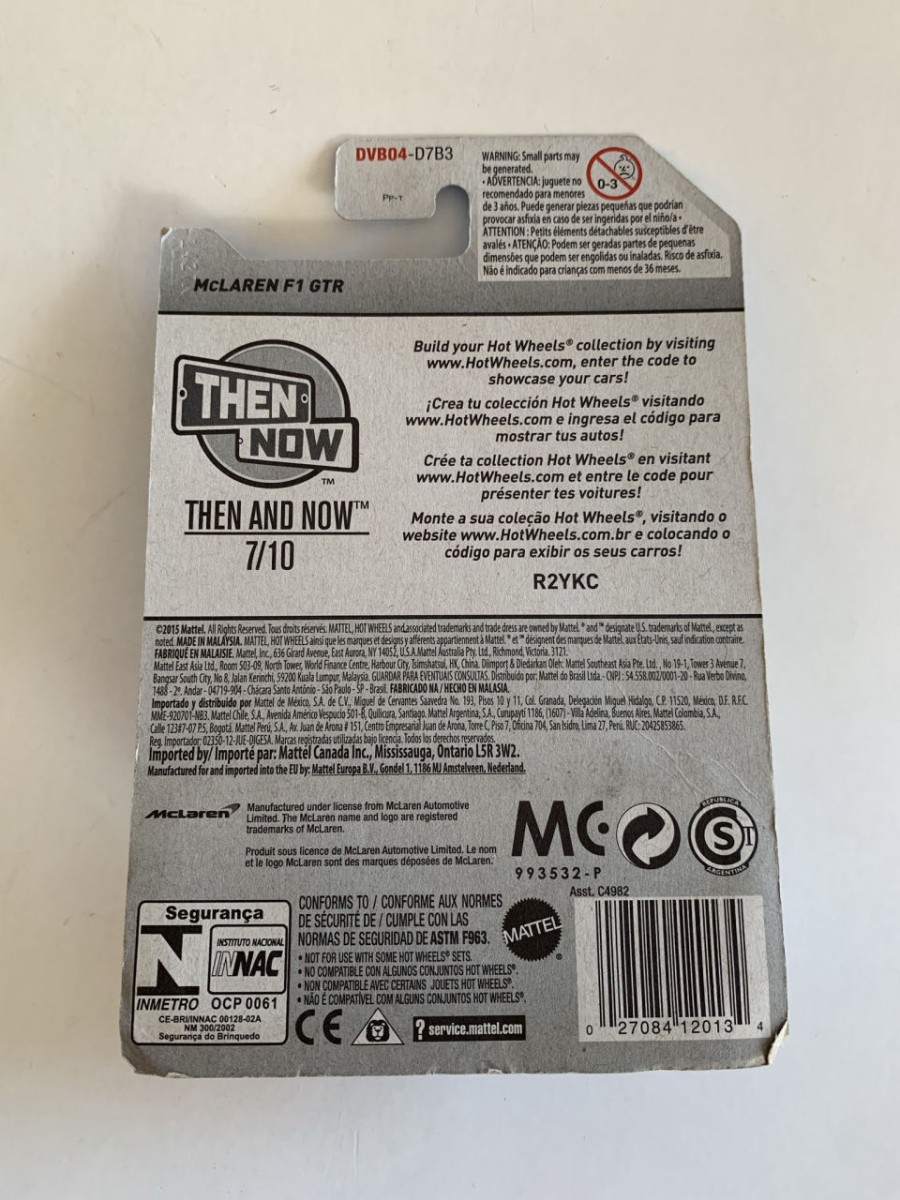HOT WHEELS - MCLAREN F1 GTR - THEN AND NOW 7/10 - DVB04 - NO BLISTER