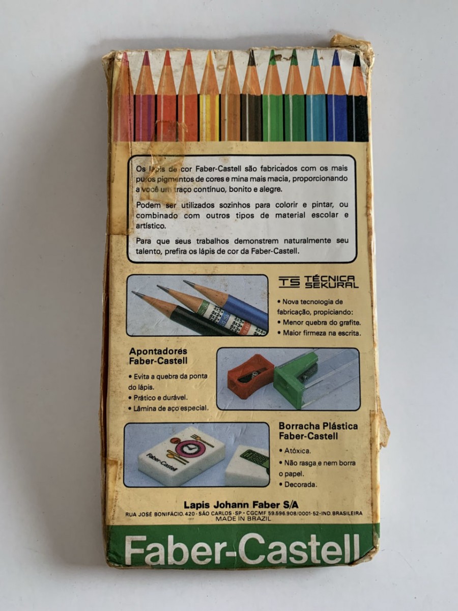 ANTIGA CAIXA DE LÁPIS COLORIDO FABER CASTELL - ANOS 70 - COM 12 LÁPIS - NO ESTADO