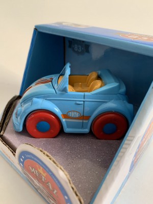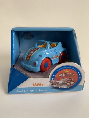 MINIATURA FUSCA AZUL CLARO - METAL CARE SERIES - MINYARE - ROUTE 83 - ABRE O CAPÔ - FRICÇÃO NAS RODAS - CARRO PULL BACK DE POLÍMEROS PLÁSTICOS - COM PEQUENA MANCHA DE TINTA NO CAPÔ - [ + 3 anos] NOVO NA EMBALAGEM