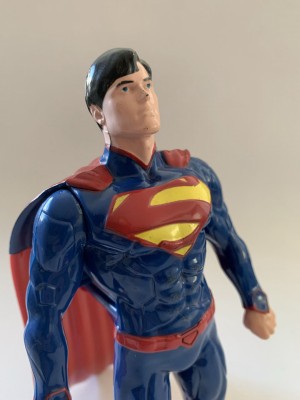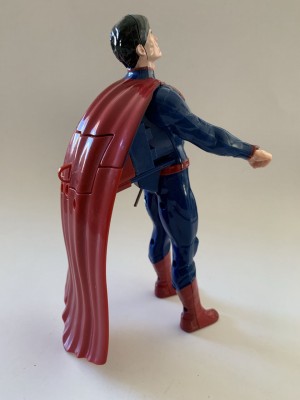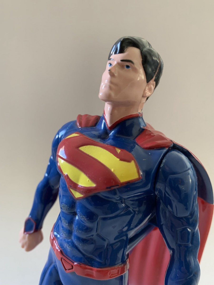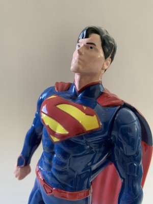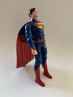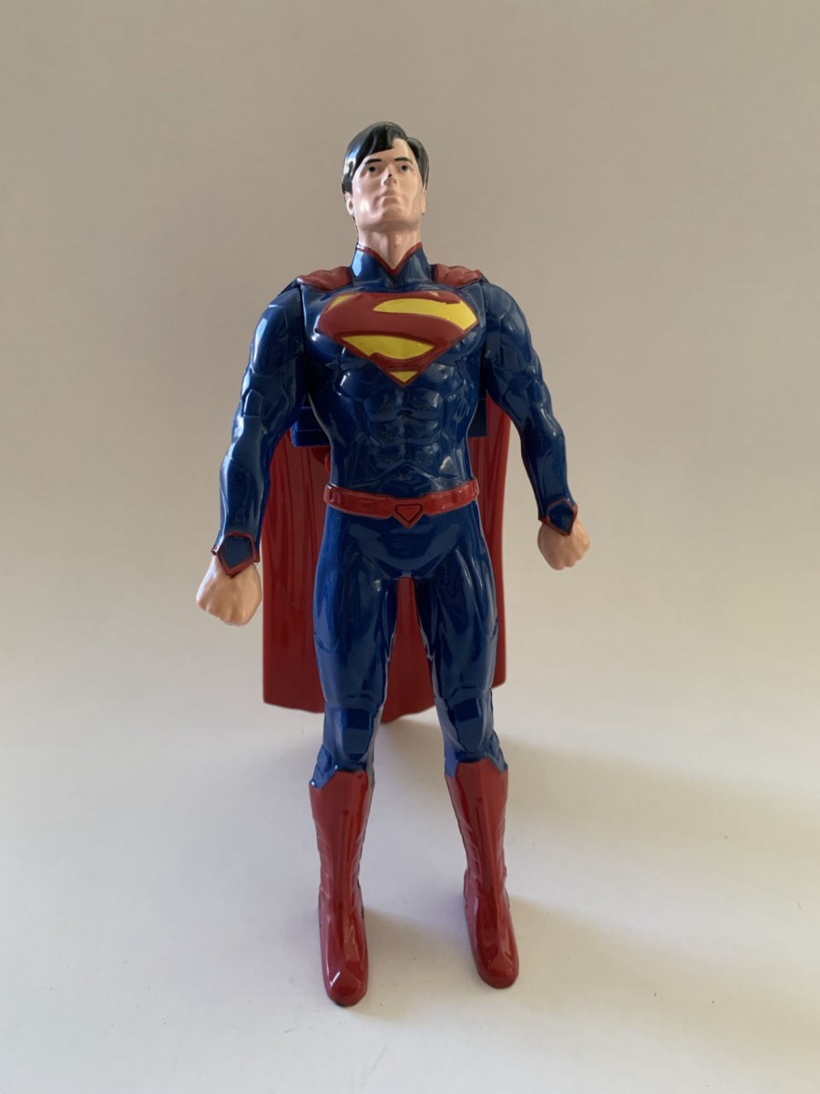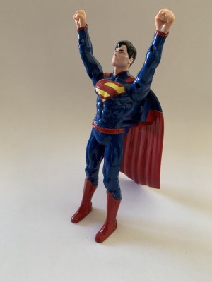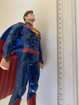 BONECO SUPERMAN DE MATERIAL RÍGIDO - MECANISMOS À PILHA SEM FUNSÃO - 22CM DE ALTURA - USADO EM BOM ESTADO - PINTURA DO ROSTO COM PEQUENO DESGASTE