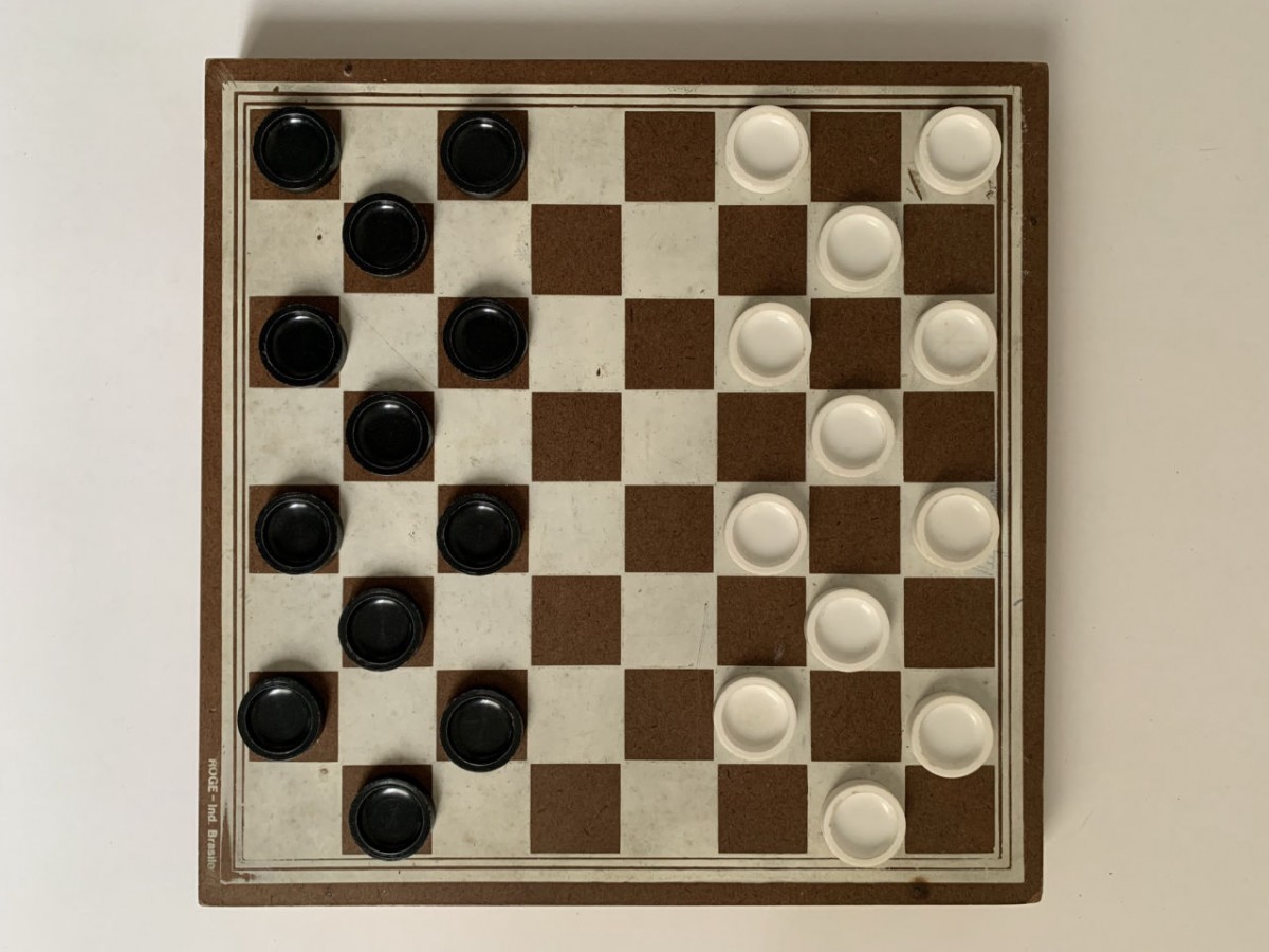 ANTIGO JOGO DE DAMAS E TRILHA COM GAVETA PARA AS PEÇAS - COMPLETO - USADO COM DESGASTE DO TEMPO E USO