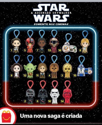 CONJUNTO COM 09 MINIATURAS COM PERSONAGENS STAR WARS - COLEÇÃO MCDONALD'S MCLANCHE FELIZ 2019 - EM ÓTIMO ESTADO