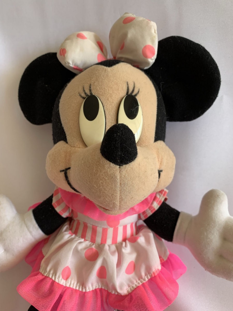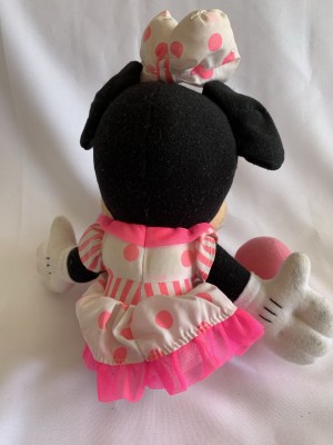 ANTIGA MINNIE MOUSE - COM VESTIDO ROSA E BRANCO E LAÇO DE TECIDO - USADA E EM BOM ESTADO