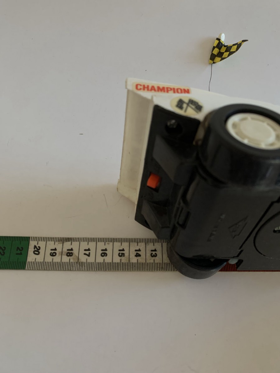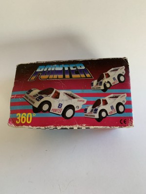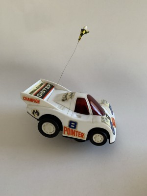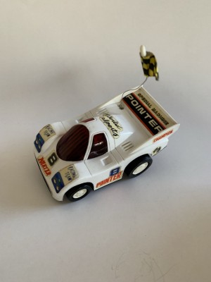 CARRINHO BATE E VOLTA AMERICANO A PILHA - BRANCO COM ADESIVO "SPECIAL MACHINE POINTER" - 18CM DE COMPRIMENTO - FUNCIONANDO - NA CAIXA - USADO, COM MARCAS DO TEMPO E NO ESTADO