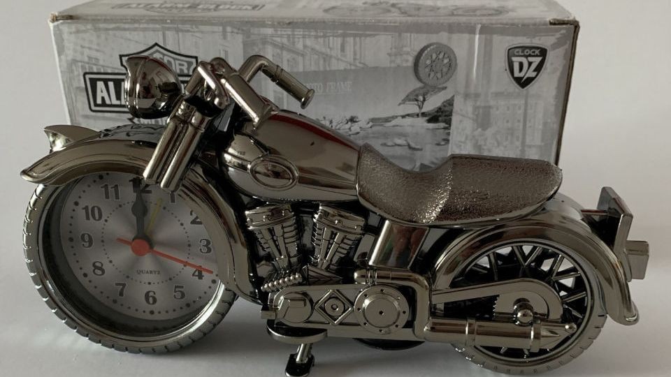 RELÓGIO E ALARME ESTILO HARLEY DAVIDSON - MOTOR MODEL ALARM-CLOCK - 22CM X 10CM DE MARTERIAL PLÁSTICO - FALTA TAMPA DA PILHA - FUNCIONANDO - EM BOM ESTADO