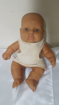 BONECA BEBE OLHOS DE VIDRO - ANOS 70 - 25CM - USADA NO ESTADO