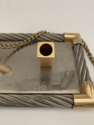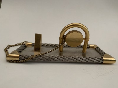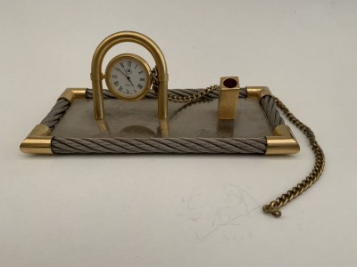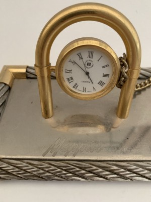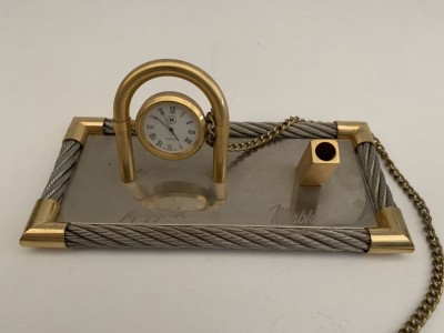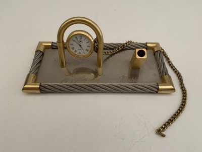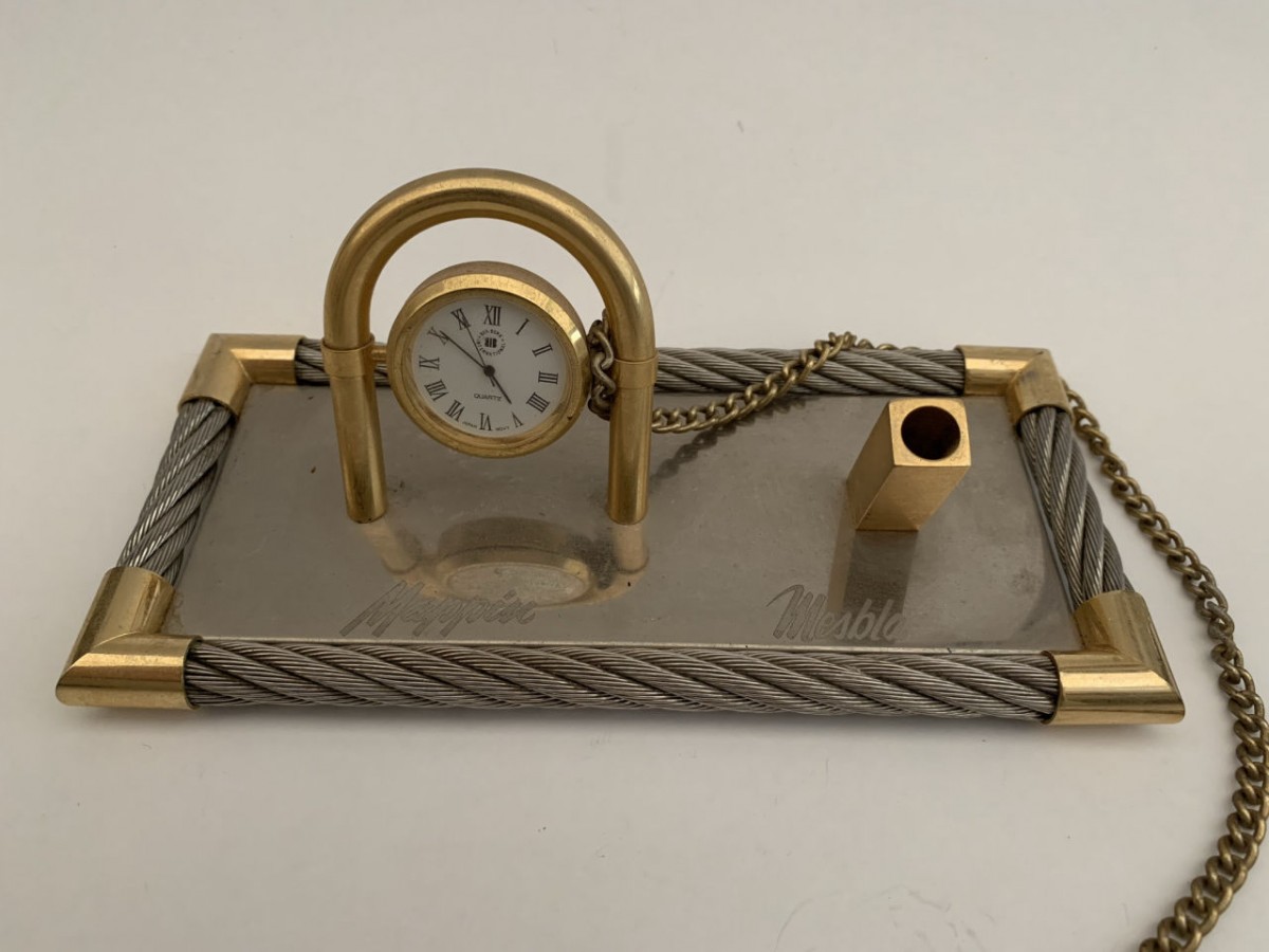 RELÓGIO DE MESA JAPONÊS - COM APOIO PARA CANETA PROMOCIONAL MAPPIN E MESBLA - RELÓGIO NÃO TESTADO - BASE 9CM X 19CM - COM MARCAS DO TEMPO, NO DEMAIS EM BOM ESTADO