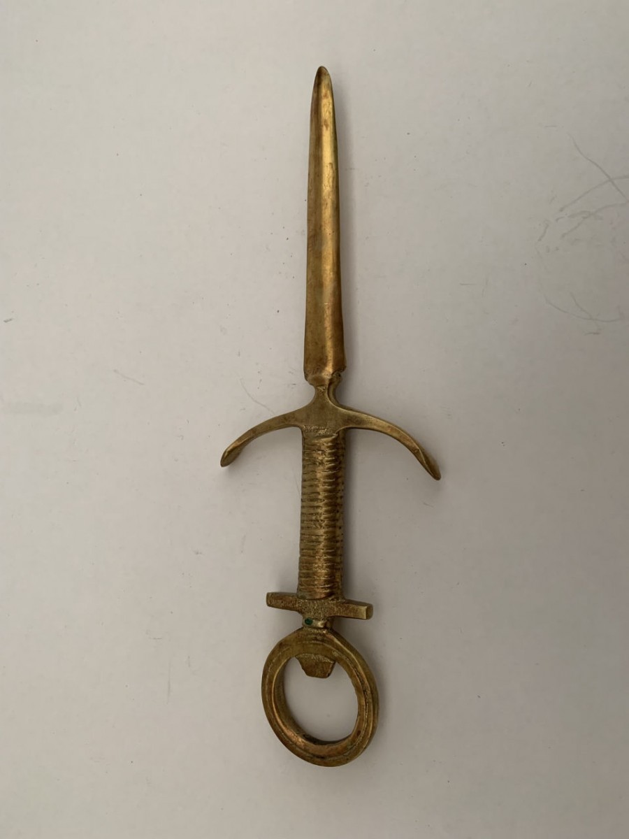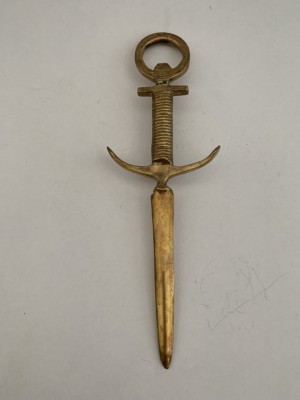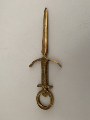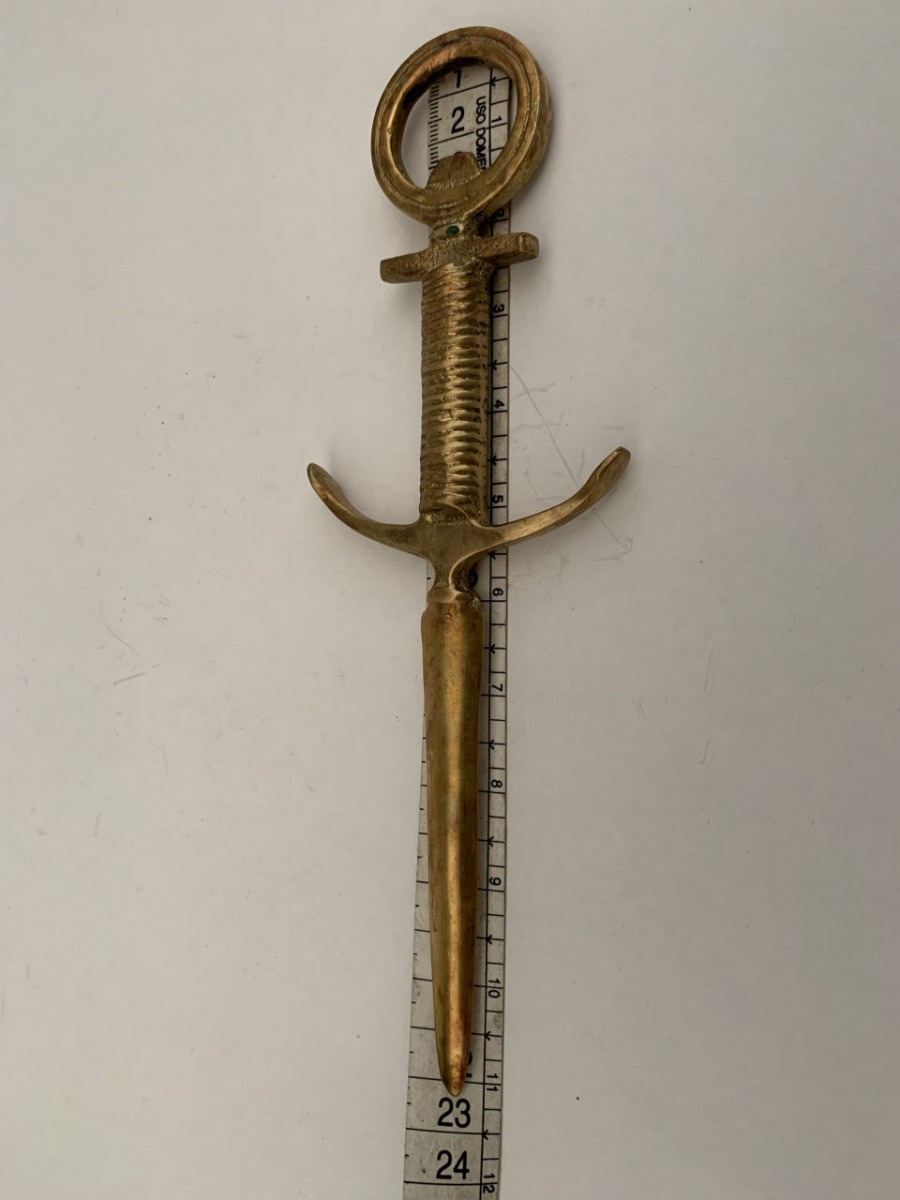 ANTIGO ABRIDOR DE CARTA EM METAL DOURADO - 22CM DE COMPRIMENTO - COM MARCAS DO TEMPO E DO USO