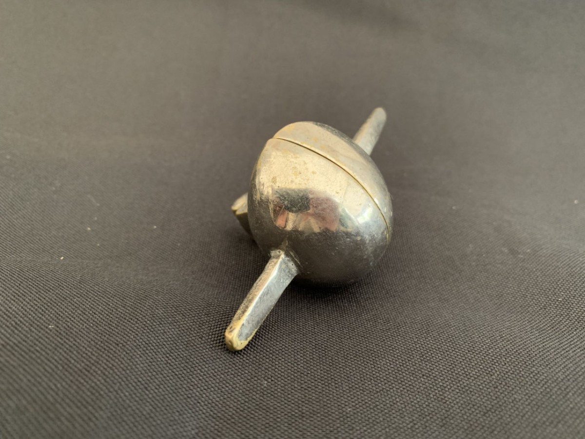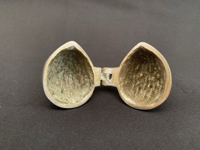 QUEBRA NOZES EM FORMA DE NOZ EM METAL PRATEADO - 09CM DE LARGURA QUANDO FECHADO DE PONTA A PONTA - EM ÓTIMO ESTADO