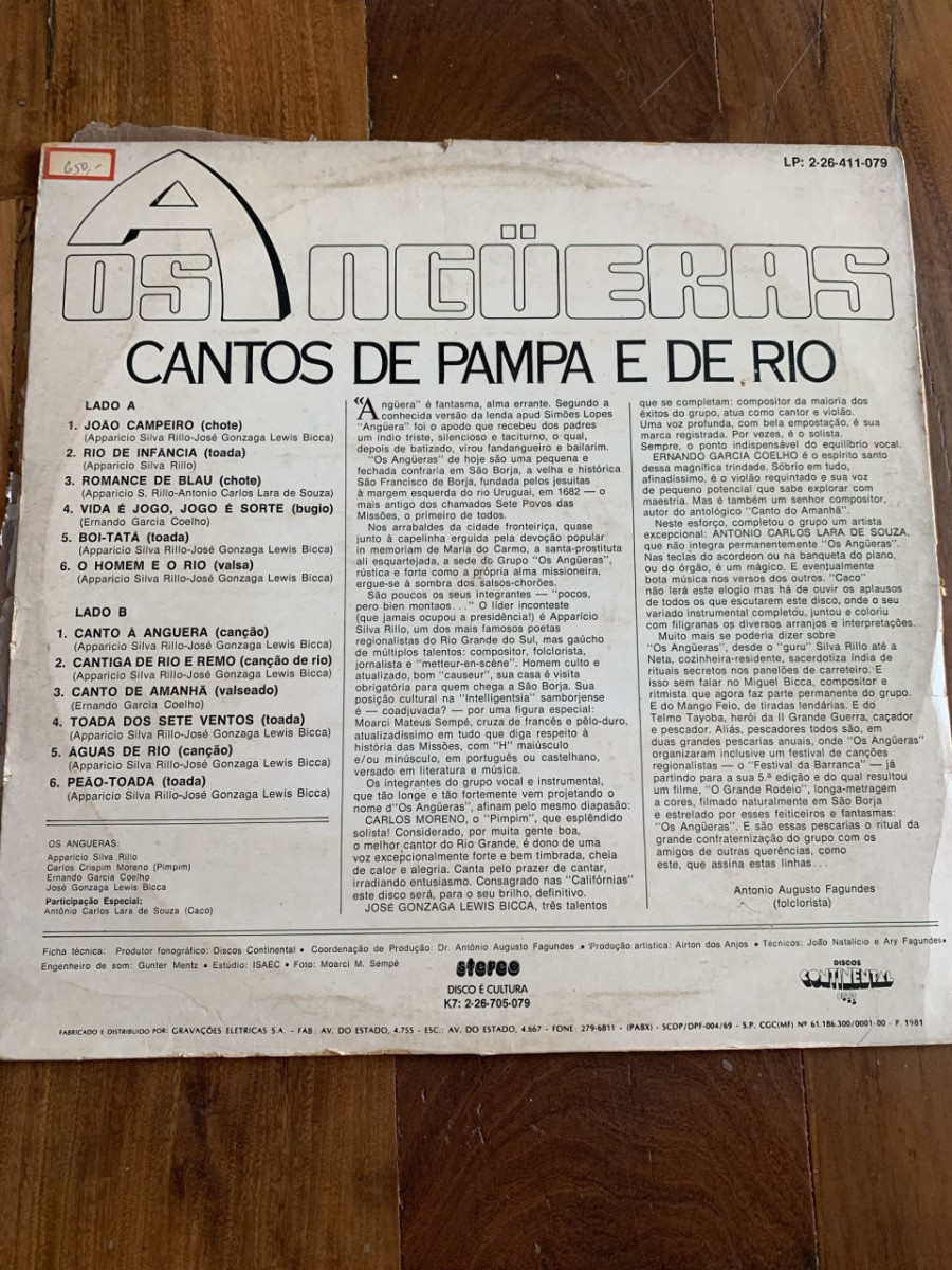 DISCO DE VINIL - OS ANGÜERAS - CANTOS DE PAMPA E DE RIO - ANO 1981 - MÚSICA REGIONAL GAÚCHA - NÃO TESTADO E EM ÓTIMO ESTADO