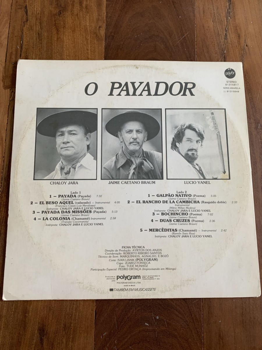 DISCO DE VINIL - JAIME CAETANO BRAUN - PAYADOR - ANO 1983 - MÚSICA REGIONAL GAÚCHA - NÃO TESTADO E EM ÓTIMO ESTADO