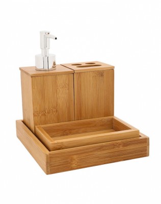 KIT DE BANHEIRO - 04 PEÇAS - BAMBU - NOVO