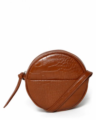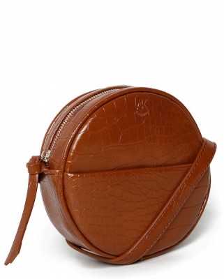 BOLSA TRANSVERSAL REDONDA - CROCO - MARROM - 16,5X5,5X16,5CM - NOVA