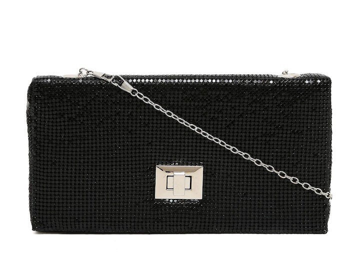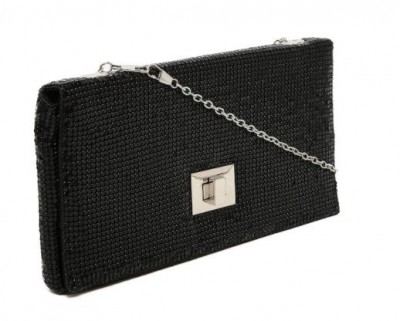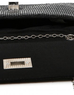 BOLSA COM ACABAMENTO DE STRASS - PRETO - COM CORRENTE - 14X25CM - NOVA