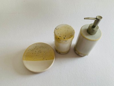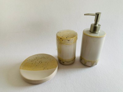 KIT DE BANHEIRO DE CERÂMICA - 03 PEÇAS - OFF WHITE - NOVO