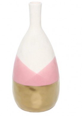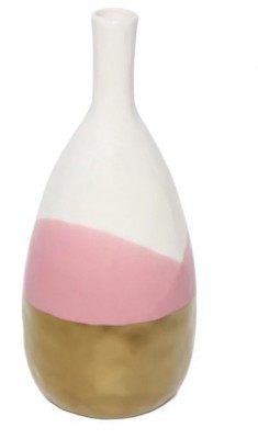 VASO GEM - ROSA E BRANCO - 25,5x11,5CM - NOVO