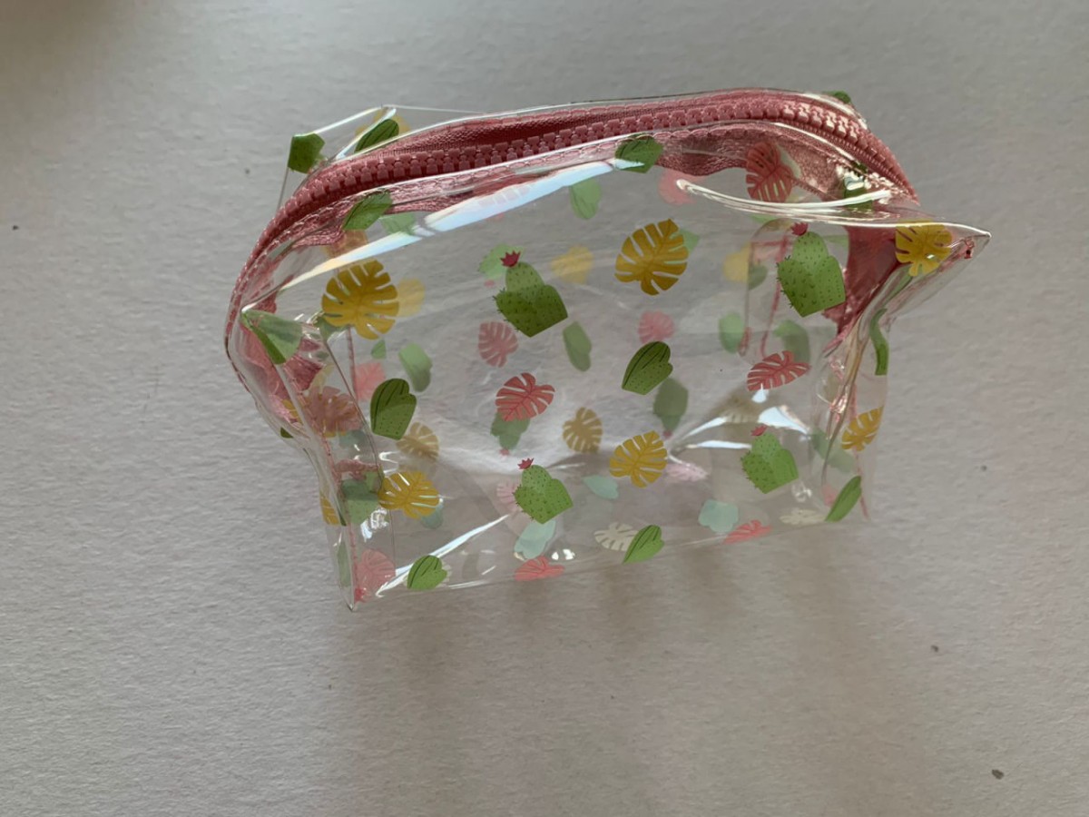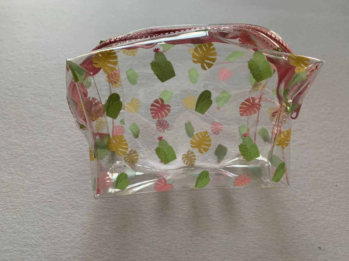 ESTOJO - NECESSAIRE - TRANSPARENTE - CACTOS - 14X11X7CM - NOVO