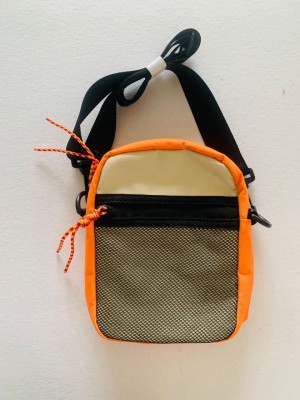 BOLSA LATERAL - BEGE E LARANJA - 22X16CM - NOVA