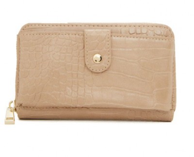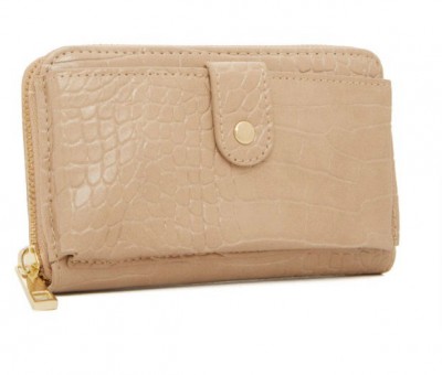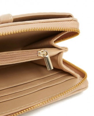 CARTEIRA - TEXTURA - ZIPER E BOTÃO - BEGE - NOVA