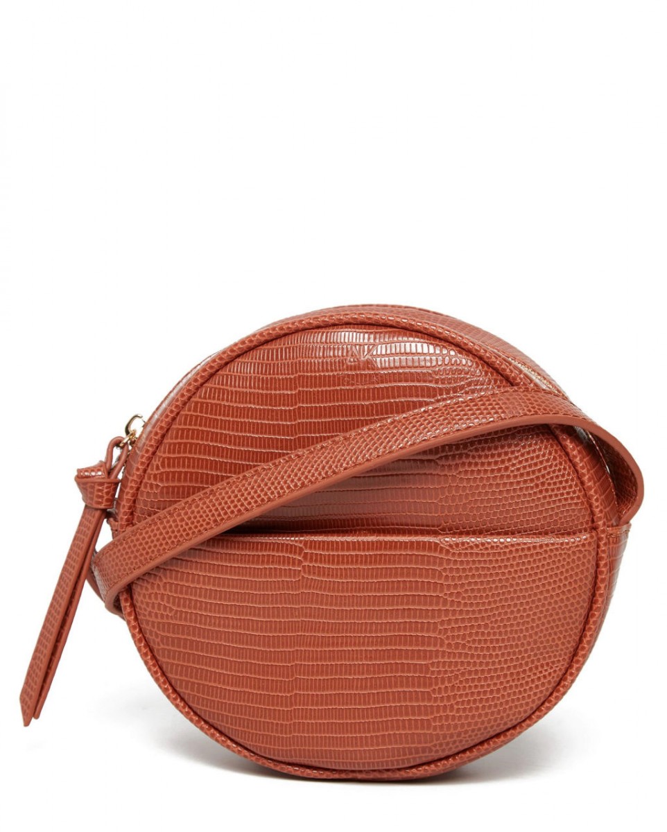 BOLSA TRANSVERSAL - REDONDA - TEXTURA - MARROM - NOVA