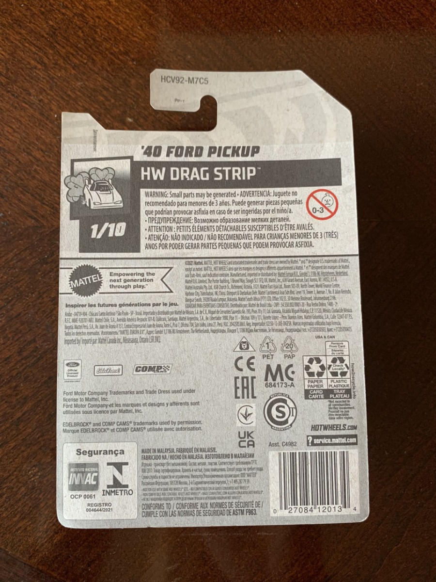 HOT WHEELS - '40 FORD PICKUP - HW DRAG STRIP 1/10 - HCV92-M7C5 - NO BLISTER