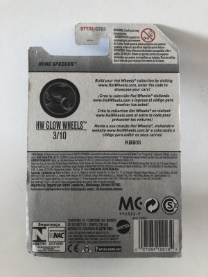 HOT WHEELS - BONE SPEEDER - HW GLOW WHEELS 3/10 - DTY32 - NO BLISTER
