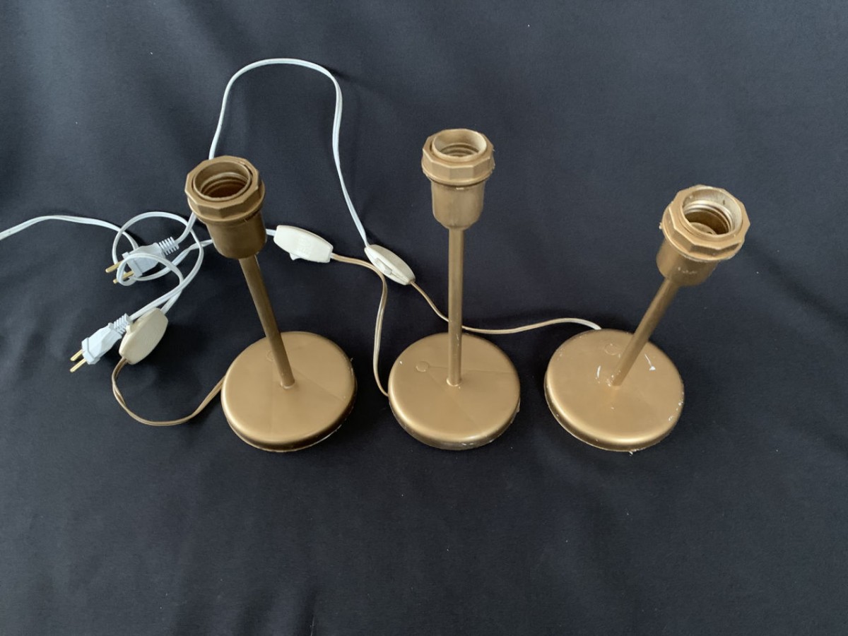 CONJUNTO COM 03 BASES PARA ABAJUR DE MATERIAL RÍGIDO PLÁSTICO, NA COR CAFÉ, COM 24CM DE ALTURA E 11CM DE DIÂMETRO DA BASE