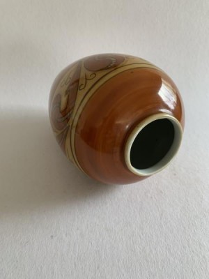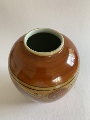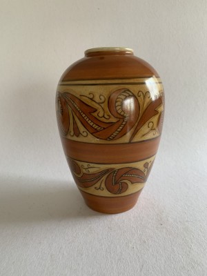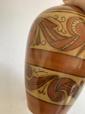 APARECIDA VALLE (1925-2008) - VASO PINTADO À MÃO COM EM TONS MARROM. 22CM DE ALTURA, 6CM DE DIÂMETRO DA BOCA, EM ÓTIMO ESTADO.