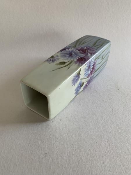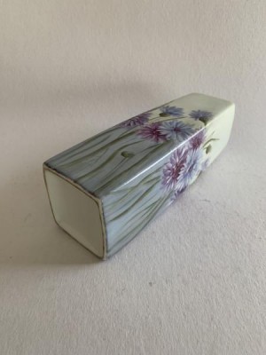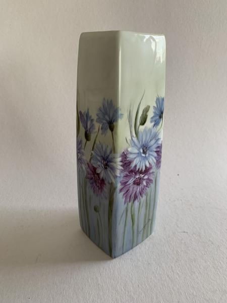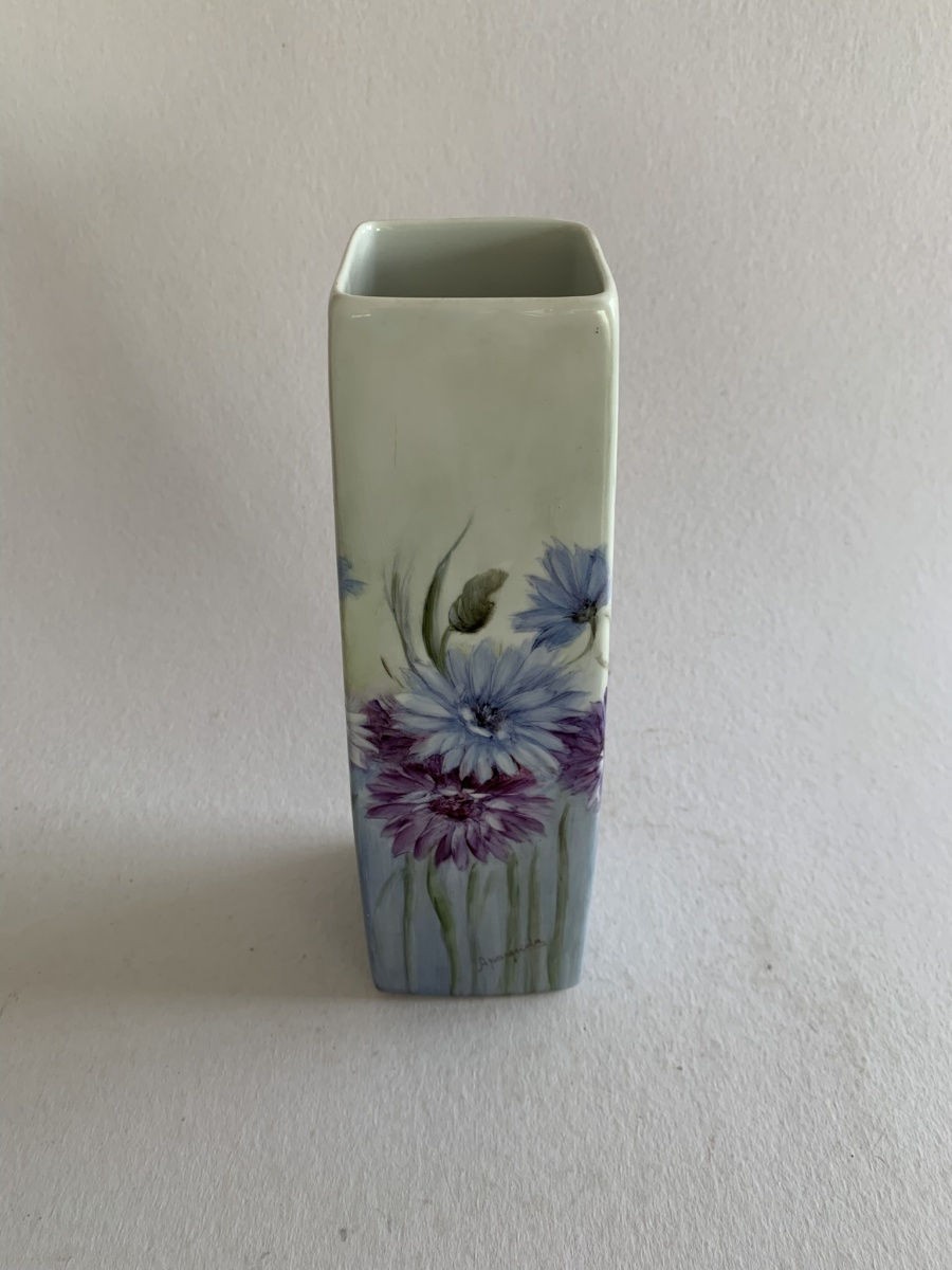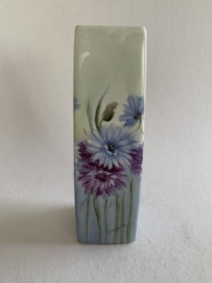 APARECIDA VALLE (1925-2008) - VASO PINTADO À MÃO COM POLICROMIA FLORAL EM TONS VIOLETA. 24CM DE ALTURA E 6CM DE DIÂMETRO DA BASE, EM ÓTIMO ESTADO. ASSINADO NO CANTO INFERIOR DIREITO EM UM DOS LADOS.
